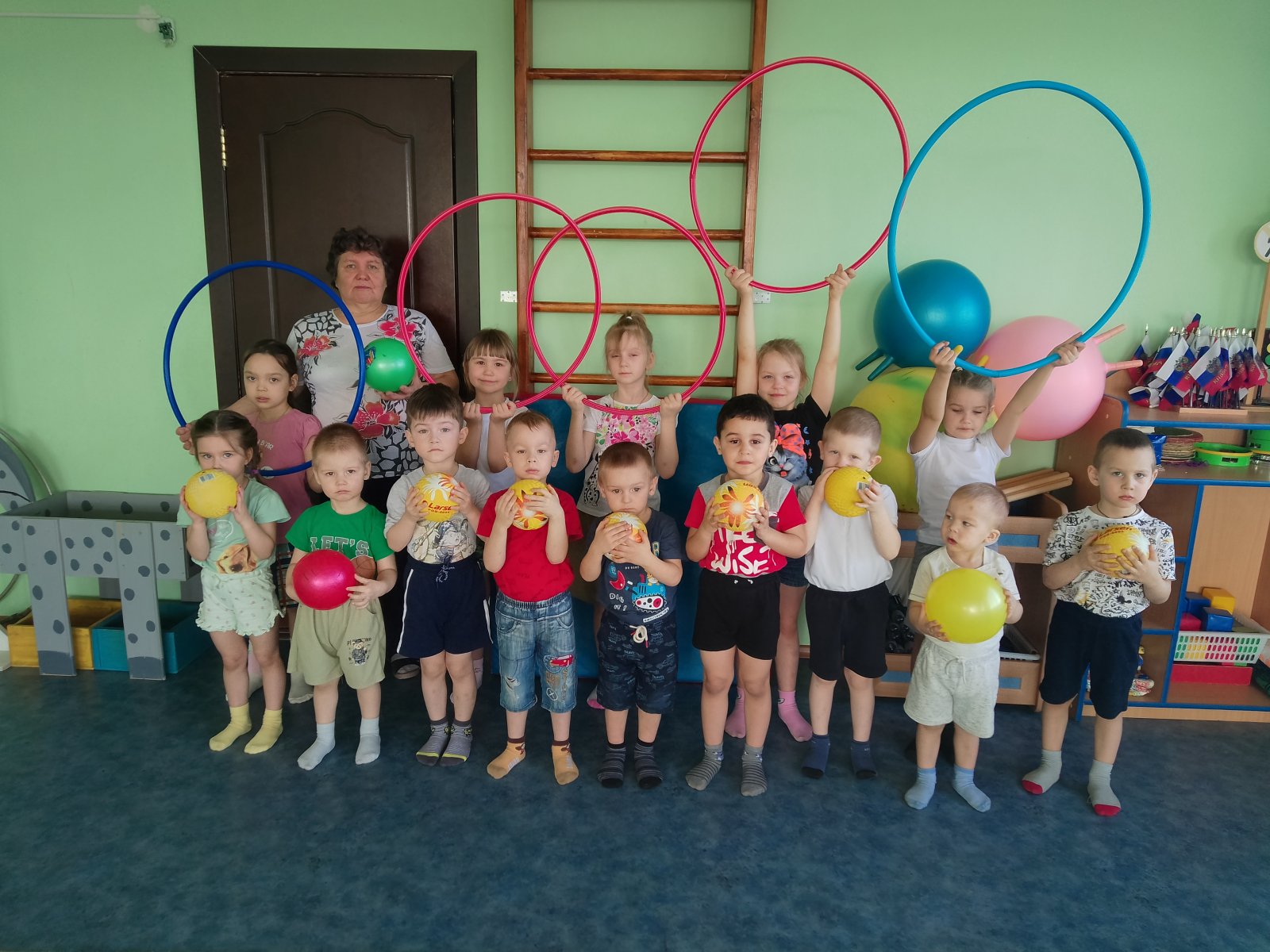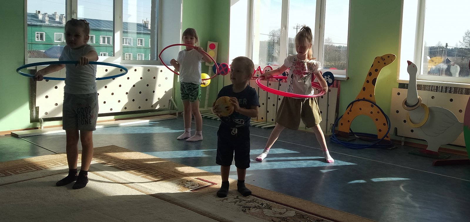 В конце недели провели флэшмоб "Веселая зарядка" и подвижные игры со спортивным оборудованием.
