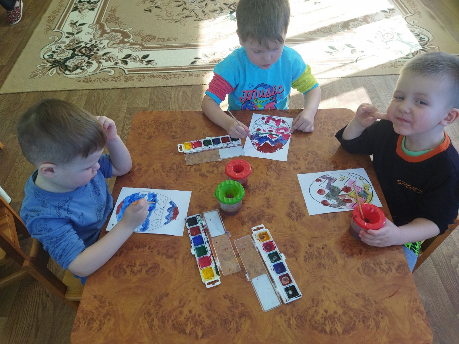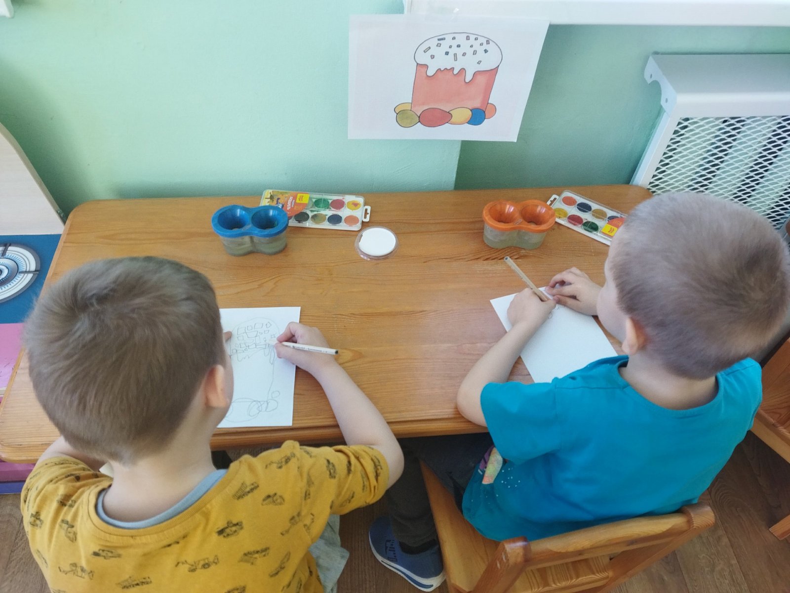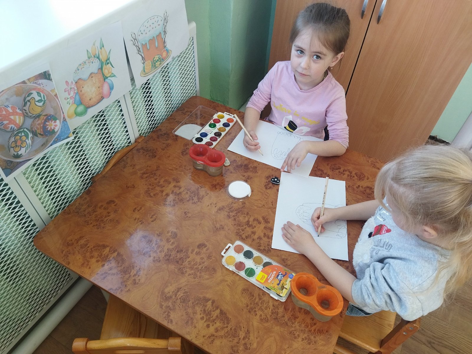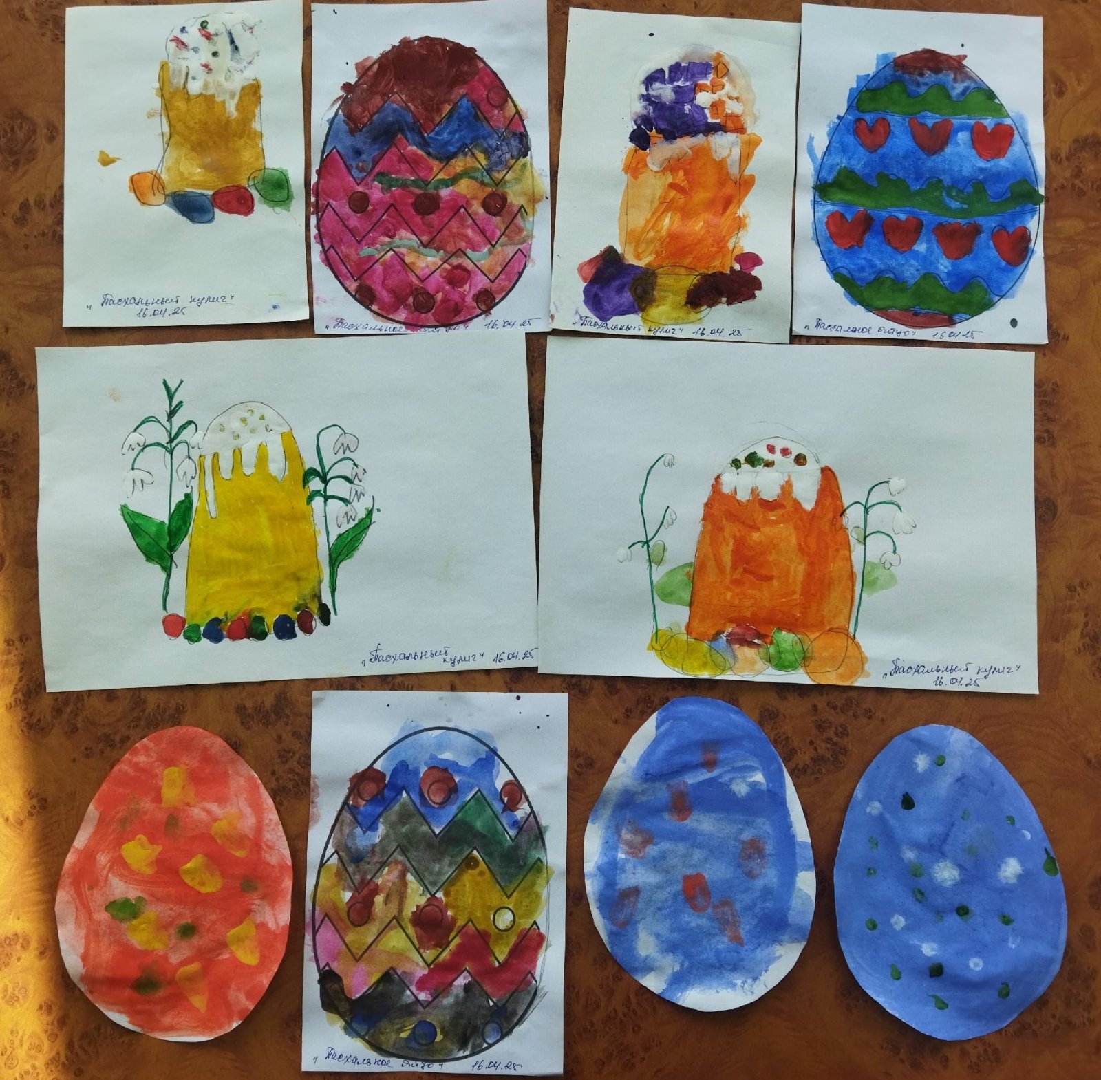 На предпасхальной неделе ребята рисовали куличи и раскрашивали яйца.