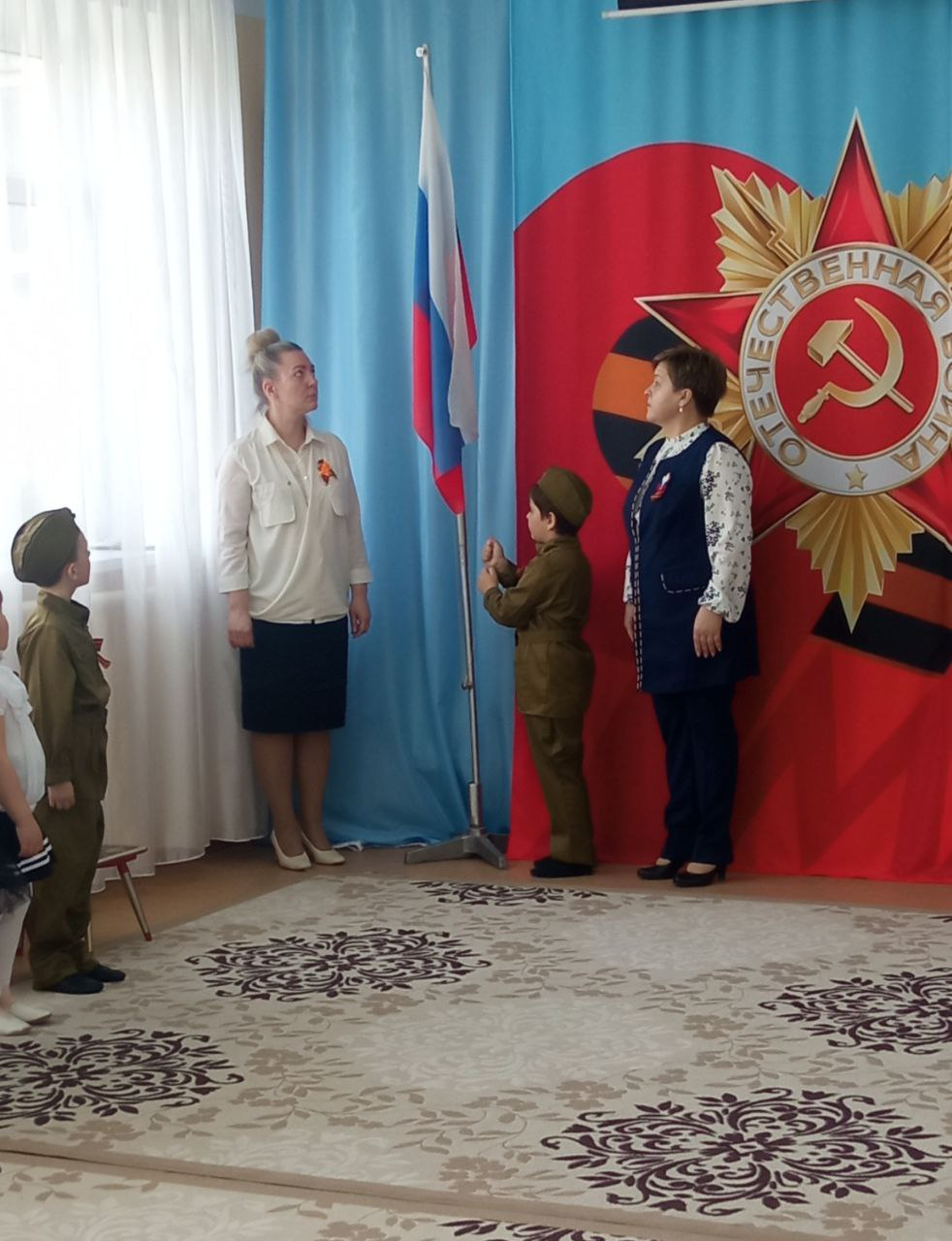 7 мая в МБДОУ детский сад № 15 «Теремок» состоялась торжественная линейка, посвященная празднованию 80 летней годовщины со дня Победы в ВОВ, которую провела учитель-логопед Е.В. Юлаева. Ребят приветствовала заведующий МБДОУ детский сад № 15 «Теремок» О.В. Сергиевская. Она сказала, что наш долг - помнить о войне, не забывать то горе, которое она принесла многим народам, помнить о подвигах, которые проявили люди в эти тяжёлые годы и самим становиться стойкими, мужественными и любить свою Родину. Под гимн России был поднят флаг воспитанником гр. «Ручеёк» Егором Бубновым. Дошкольники с замиранием сердца просмотрели документальный ролик о войне и памятниках погибшим воинам. Ребята с присутствующими гостями почтили память павших минутой молчания. После торжественной линейки воспитанники п. Первомайский, совестно с дошкольниками детского сада п. Новый и педагогами приняли участие в ежегодном традиционном торжественном шествии «Бессмертный полк» и возложение цветов у памятника Погибшим воинам. На митинге ребята читали стихи, а воспитанники гр. «Звездочка» под руководством воспитателя Е.Ю. Кочновой исполнили песню «9 мая».