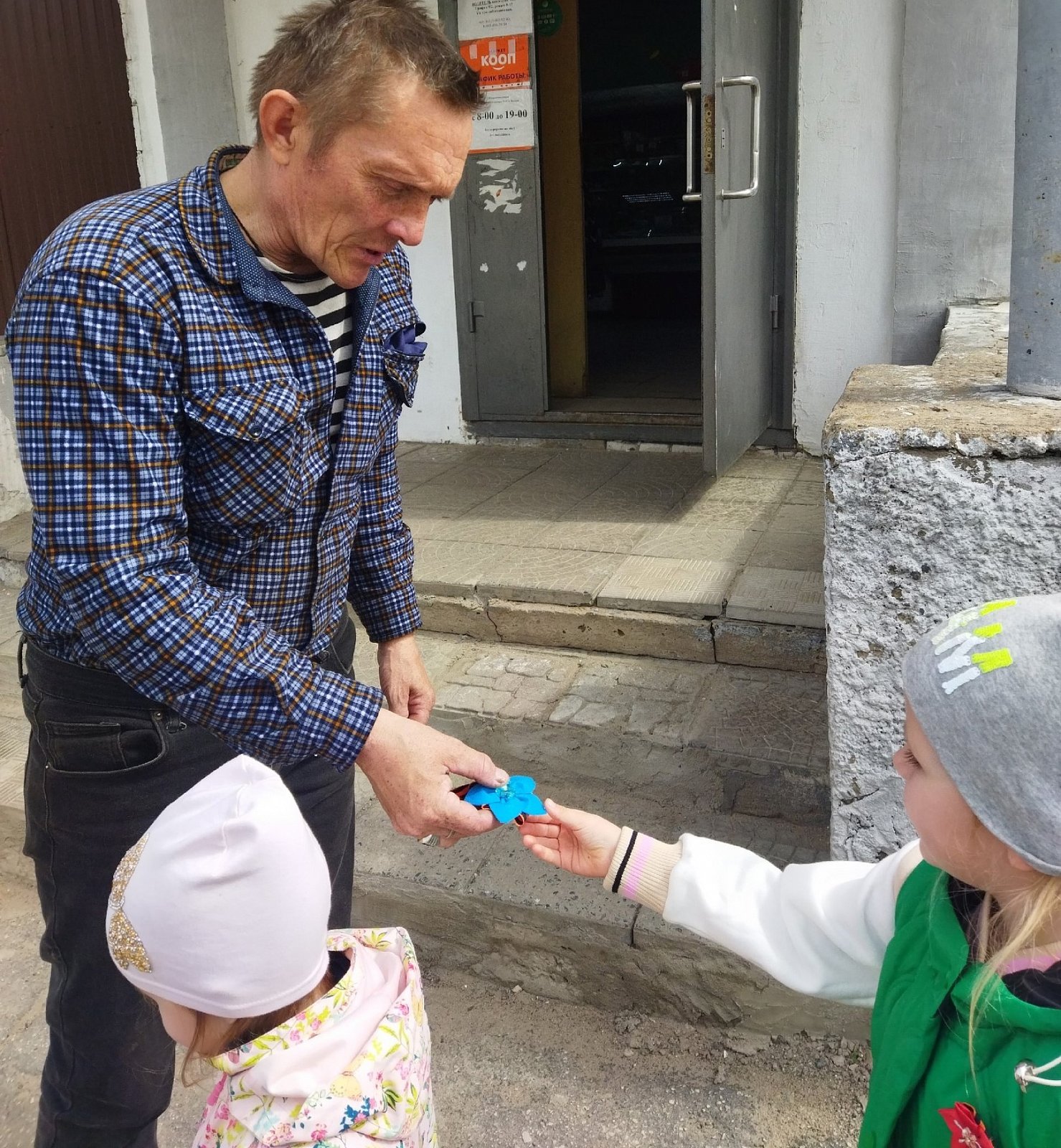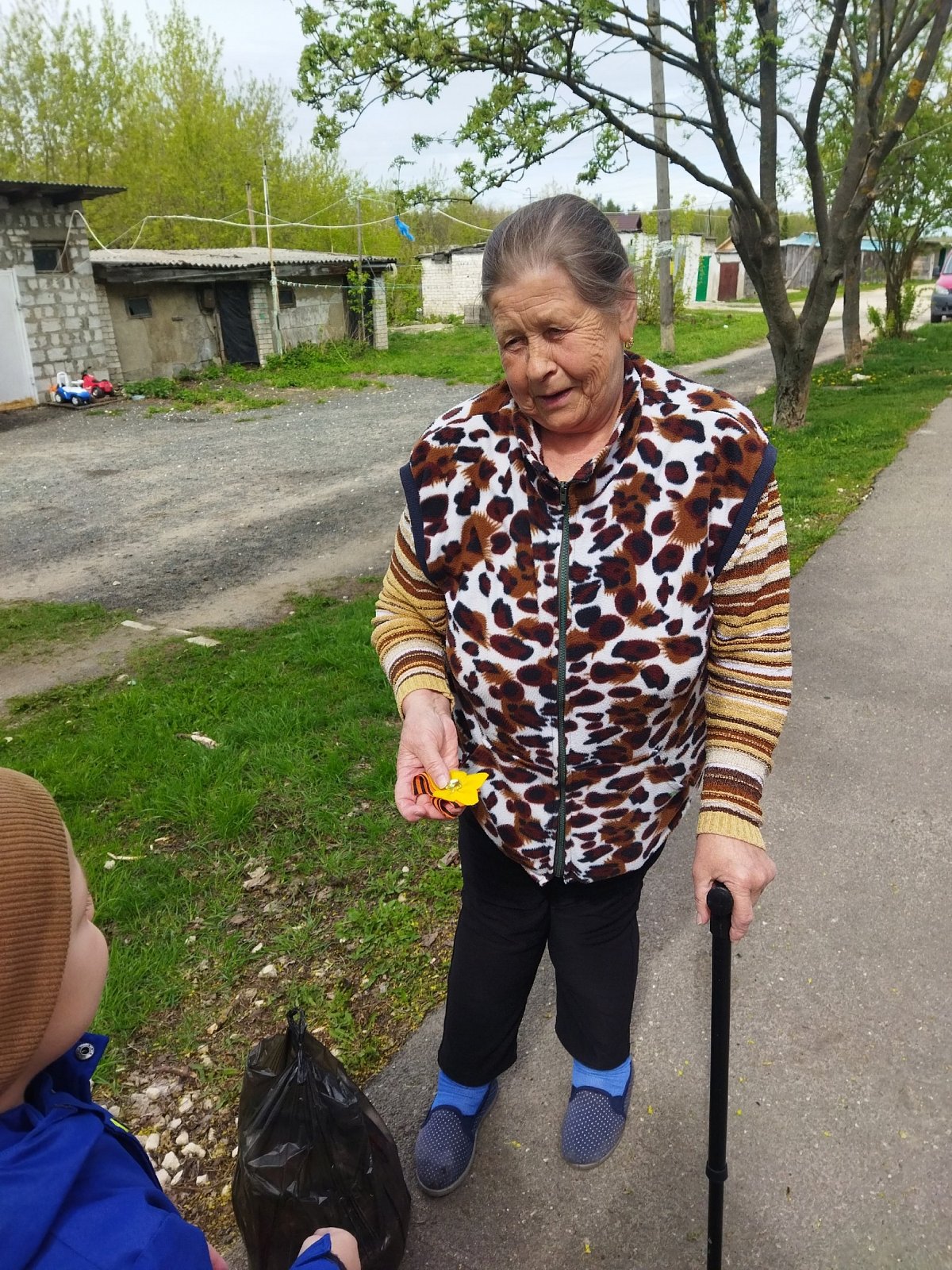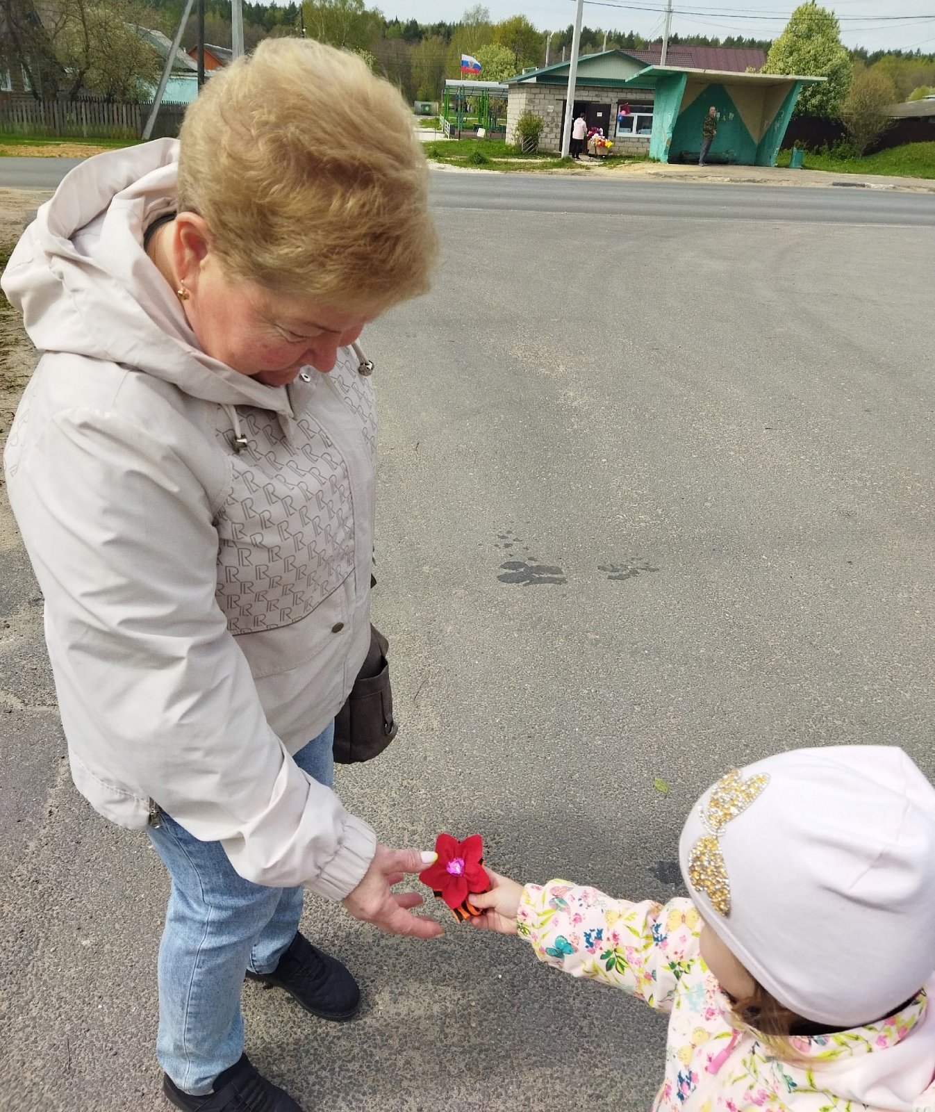 Изготовленные значки с Георгиевской лентой ребята подарили прохожим на улице и поздравили их с приближающимся 80-летие Великой Победы.