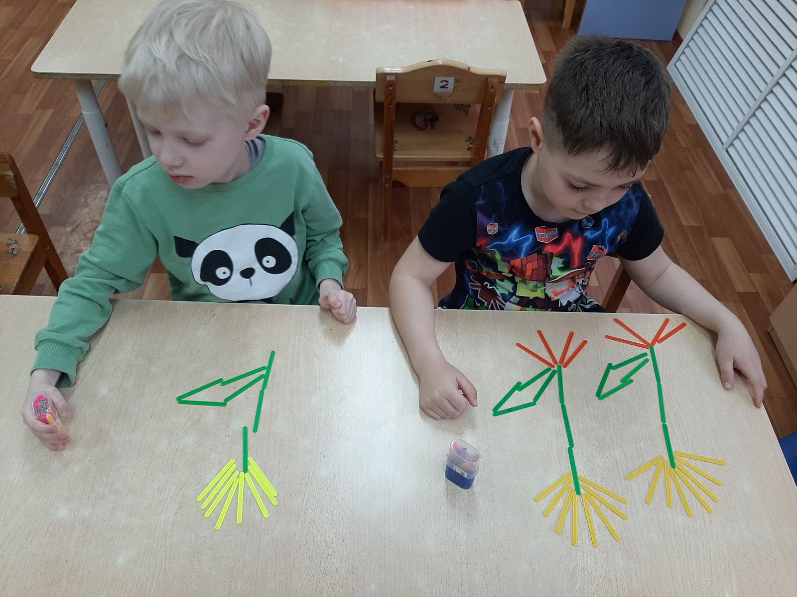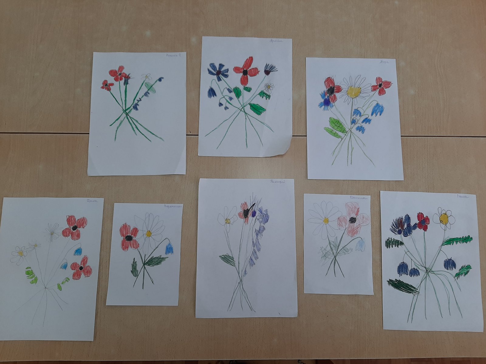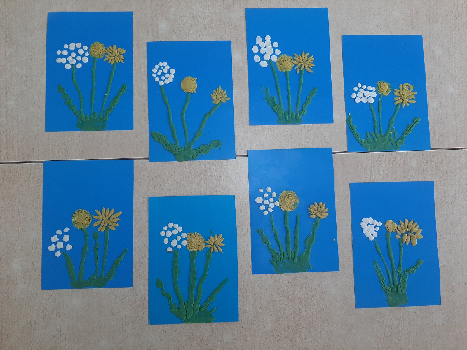 Гуляя на прогулке, дети очень часто обращали внимание на цветы, задавали различные вопросы о них, охотно любовались цветами и постарались передать красоту цветов в своих работах – лепка - пластилинография «Одуванчики», конструирование «Полевые и луговые цветы» и рисование «Букет полевых цветов». Для закрепления знаний дети играли в разные дидактические игры «Сложи цветок», «Найди растение по описанию», «Четвертый лишний», пальчиковые игры и подвижные игры «Садовник», «Собери букет». В группе была организована выставка совместного творчества детей и их родителей на тему: «Букет полевых цветов».