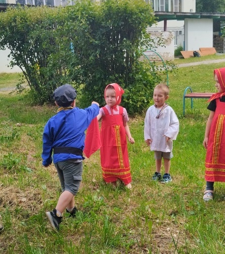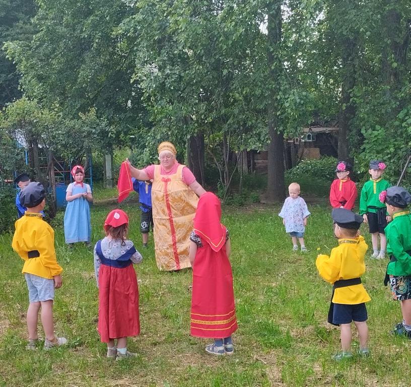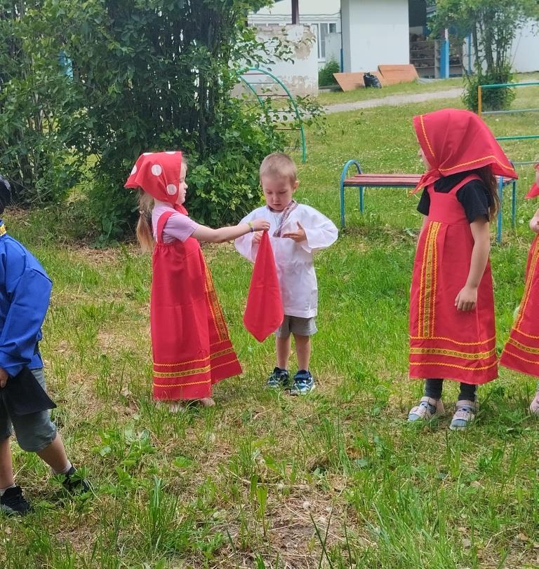 6 июня на группах "Звёздочка" и "Колокольчик" провели развлечение "День русской берёзки". Берёза является символом Троицы. Дети в нарядных русских костюмах поиграли в игру "передай платочек", поводили хоровод под песню" Во поле берёза стояла"., украшали берёзку разноцветными ленточками.