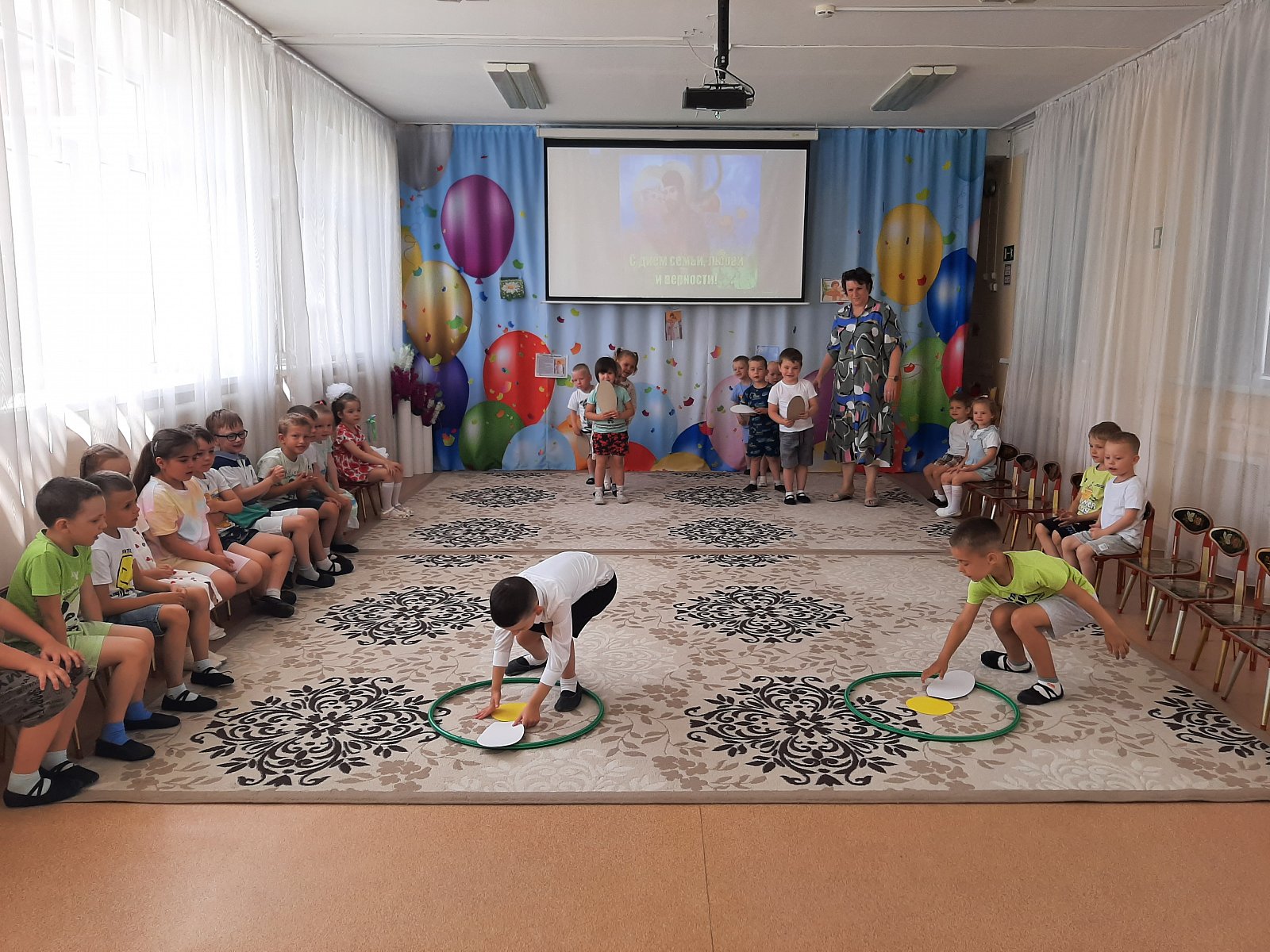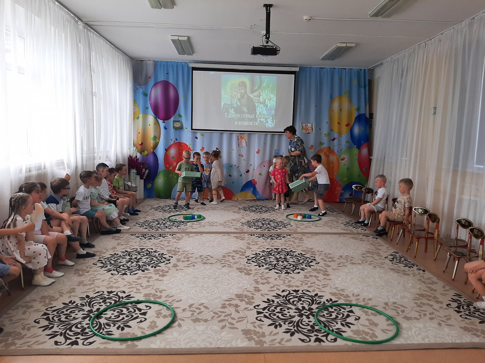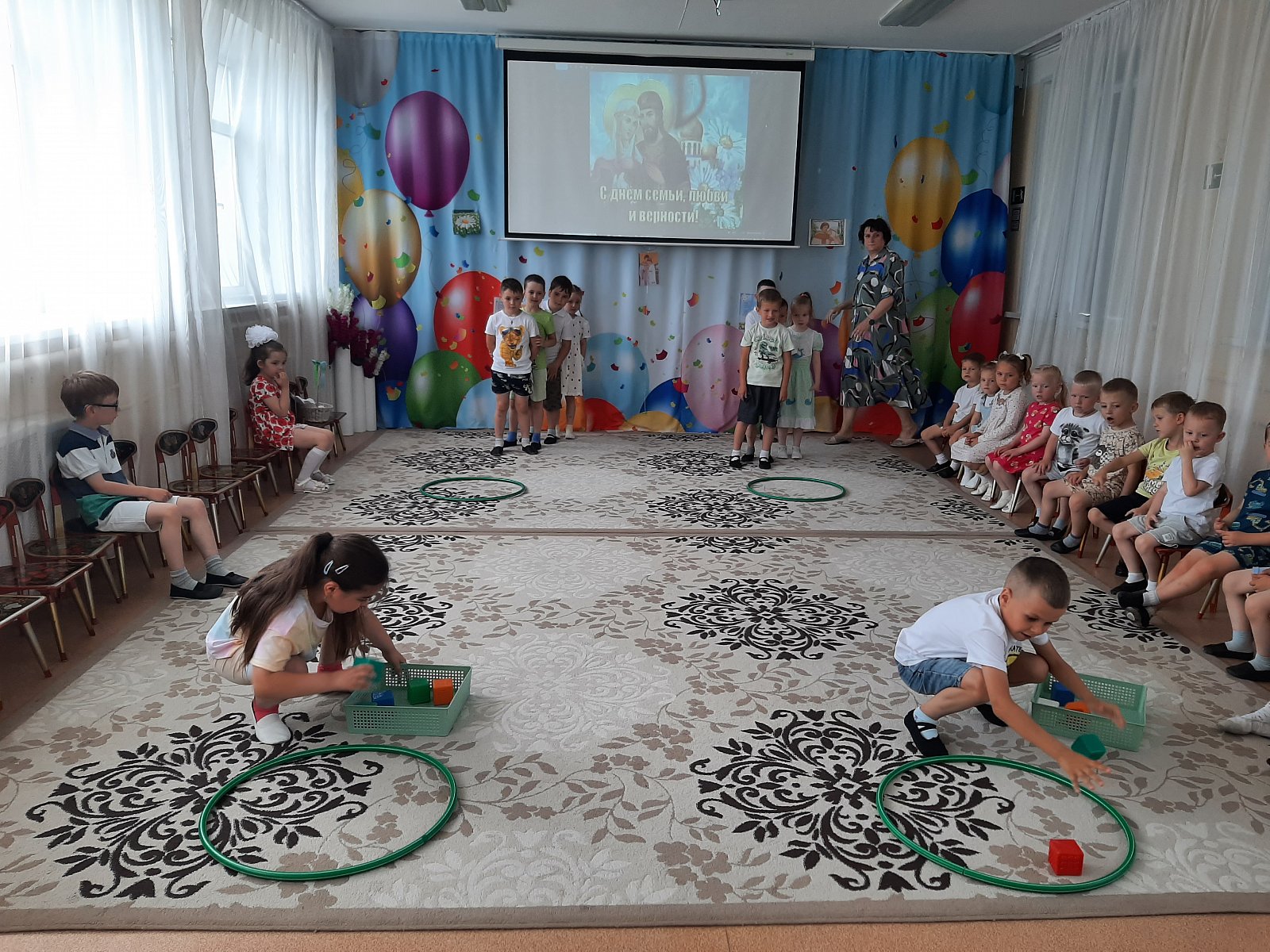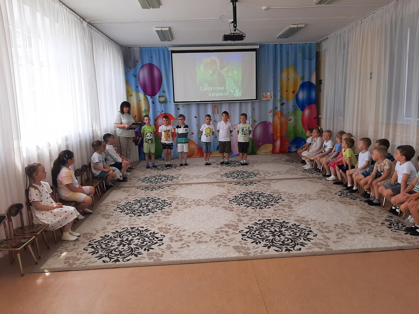 Вот и в нашем детском саду «Теремок» посёлок Первомайский весело и душевно отметили День семьи, любви и верности! Дети узнали о возникновении этого замечательного дня, историю святых Петра и Февронии Муромских, чей союз является образцом верности, любви и семейных ценностей. Во время праздника ребята читали стихи, отгадывали загадки, участвовали в конкурсах «Собери ромашку», «Накрой стол», «Уборка квартиры», «Весёлый платочек», а в завершении праздника дети исполнили танец «Дружба – это не работа».