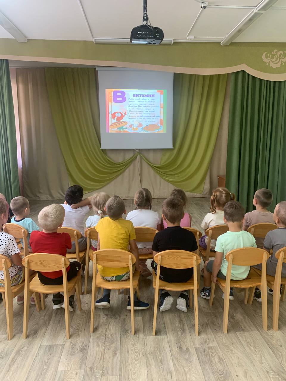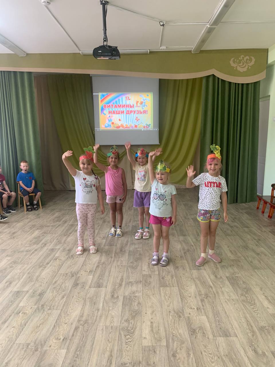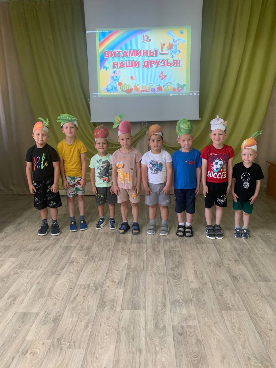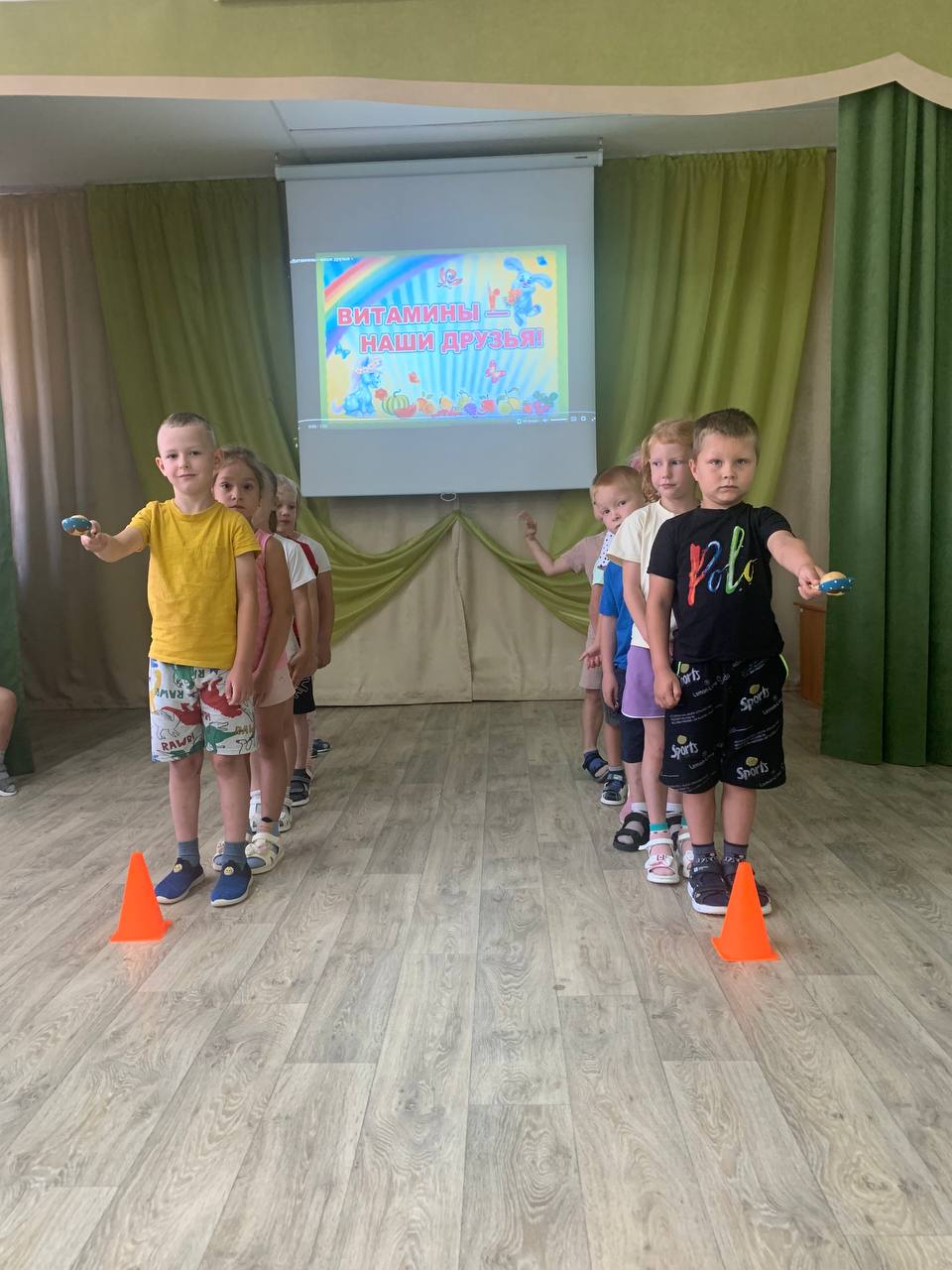08.08. В МБДОУ д/с «Теремок» (п. Новый) в старших группах прошло развлечение «Витаминная семья». С целью расширения представлений об овощах, фруктах и содержащихся в них витаминах, показали детям презентацию «Витамины». Ребятам было интересно и познавательно. В споре о пользе витаминов участвовали дети, наряженные в шапочки овощей и фруктов. Выяснилось, что витаминами богаты и овощи, и фрукты. Не забыли и про ягоды, которые всем очень полезны! Дети танцевали, пели, веселились, играли в спортивные игры – аттракционы. Они узнали, какие бывают витамины, в каких овощах и фруктах содержатся, для чего необходимы людям.