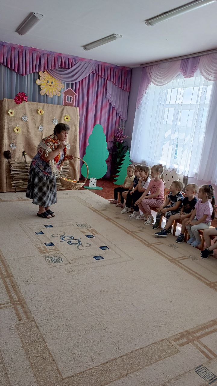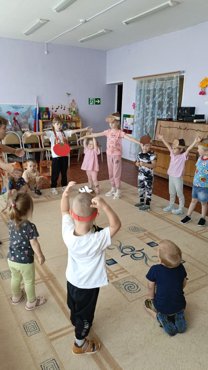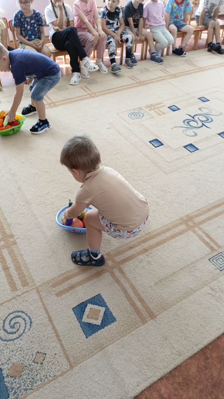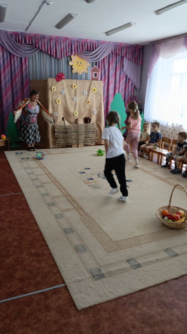 В рамках тематической недели "Летом отдыхаем- про витамины все узнаем!", педагоги Сорокина С.С. и Соколова Н.В. подготовили для детей развлечение "Есть у нас огород...", где пришла в гости к ребятам бабушка Дуня с корзиной овощей и фруктов, попросила детей помочь разобрать по корзинкам овощи и фрукты,дети легко справились с заданием, ребята отгадывали загадки про овощи и фрукты, рассказали бабушке,какие заготовки на зиму можно приготовить из них и какие вкусные блюда получаются из овощей и фруктов, активно участвовали в хороводе "Есть у нас огород...", Соколова Н.В. провела с детьми веселую, народную игру "Блины" и пояснила, что можно печь блины, оладьи из кабачков и яблок.