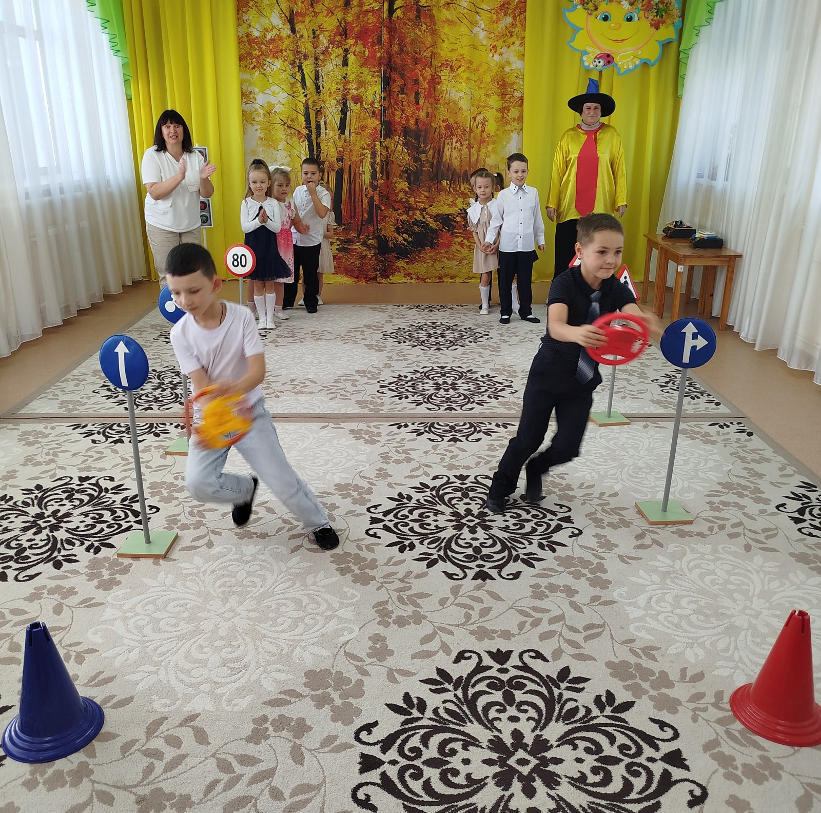 Дети в игровой форме закрепили знания о правилах дорожного движения, дорожных знаках, побывали и пешеходами, и пассажирами, и конечно водителями. Исполнили веселый флешмоб «Если с другом вышел в путь», отвечали на вопросы и отгадывали загадки.