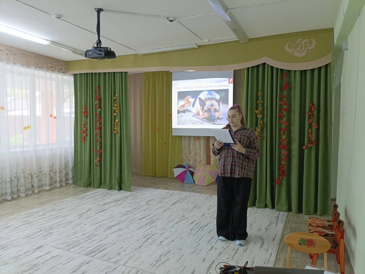 23 сентября, в гости к ребятам пришла ученица Новопоселковской школы Фещенко Алёна. Она рассказала ребятам о жизни бездомных животных и как они появляются у нас на улицах. Поиграла в игру " Угадай - бездомное животное или нет, как догадались". Показала призентацию, как ученики на вырученные средства от сдачи макулатуры закупают корма и привозят в приют для брошенных животных. В конце встречи попросила ребят совместно с родителями принять участие в акции " Помощь бездомным животным"