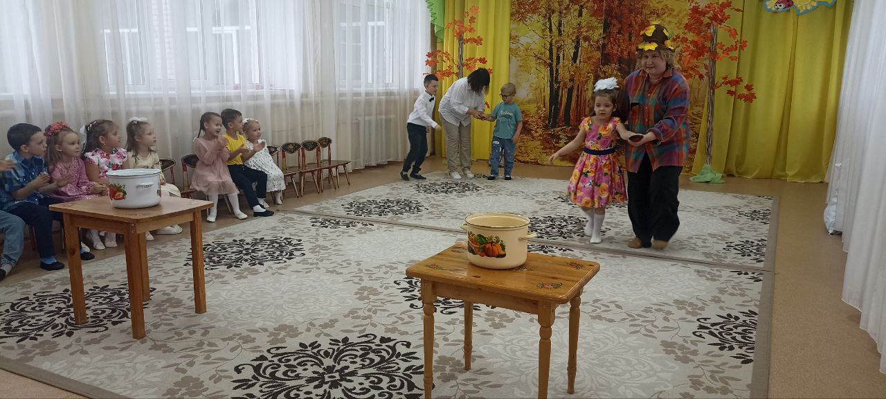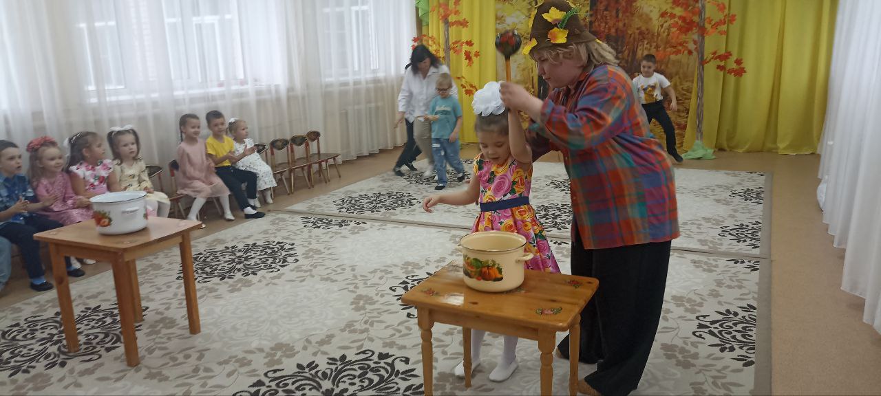 Праздник прошел эмоционально ярко, оставив в памяти детей и родителей незабываемые впечатления. В конце развлечения дети получили сладкие угощения в виде овощей, которое принес со своего огорода Пугало.