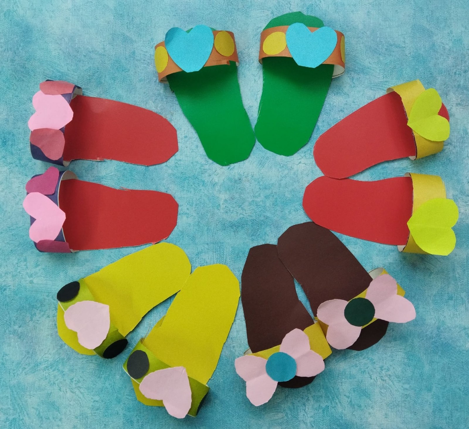Перед тем, как приступить к аппликации ребята изучали виды обуви, говорили о том, для чего она нужна и какой вид обуви подходит для каждого времени года. Провели беседы о истории возникновения обуви, узнали, кто и как её изготавливает, из каких материалов. Затем ребята рассмотрели какие бывают тапочки и как их можно украсить. И когда все формальности были соблюдены, работа закипела. Каждый ребенок изготовил свою неповторимую пару тапочек для куколки. От процесса ребята получили массу положительных эмоций и чувство гордости за свою работу.