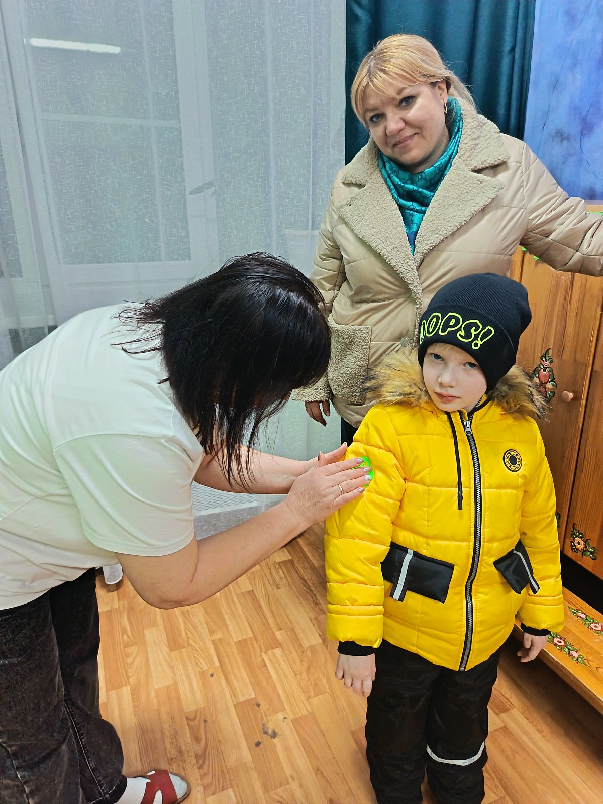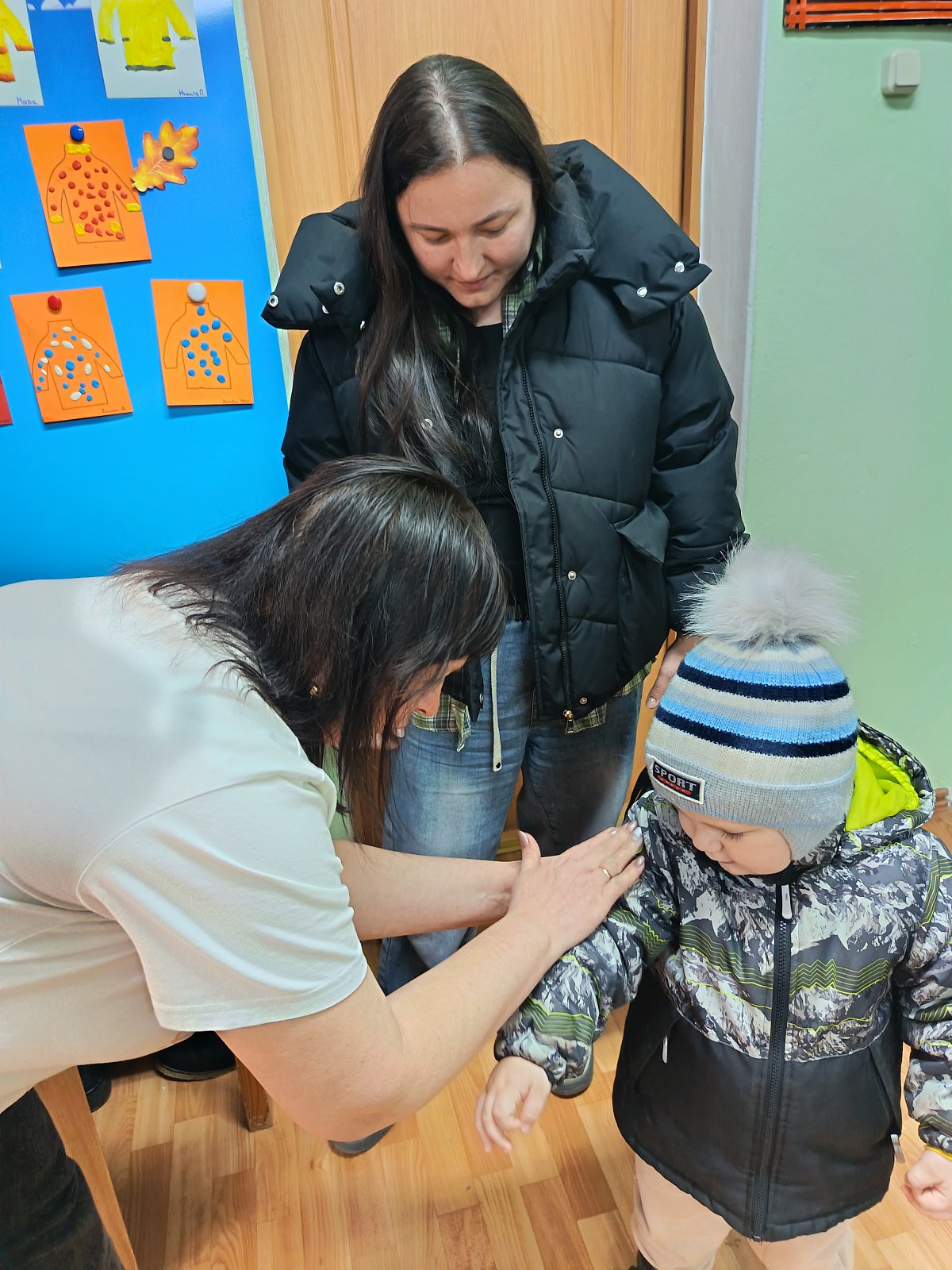 Родители провели с детьми беседу о правилах дорожного движения и показали дорожные знаки, которые помогают пешеходам и водителям. А также были наклеены на верхнюю одежду ребёнка светоотражающие элементы и вручены родителям памятки о правилах дорожного движения.