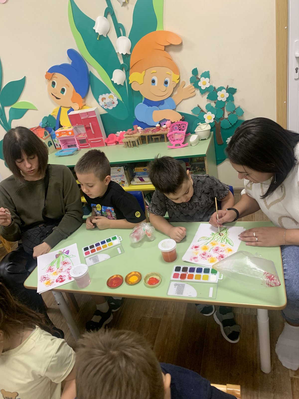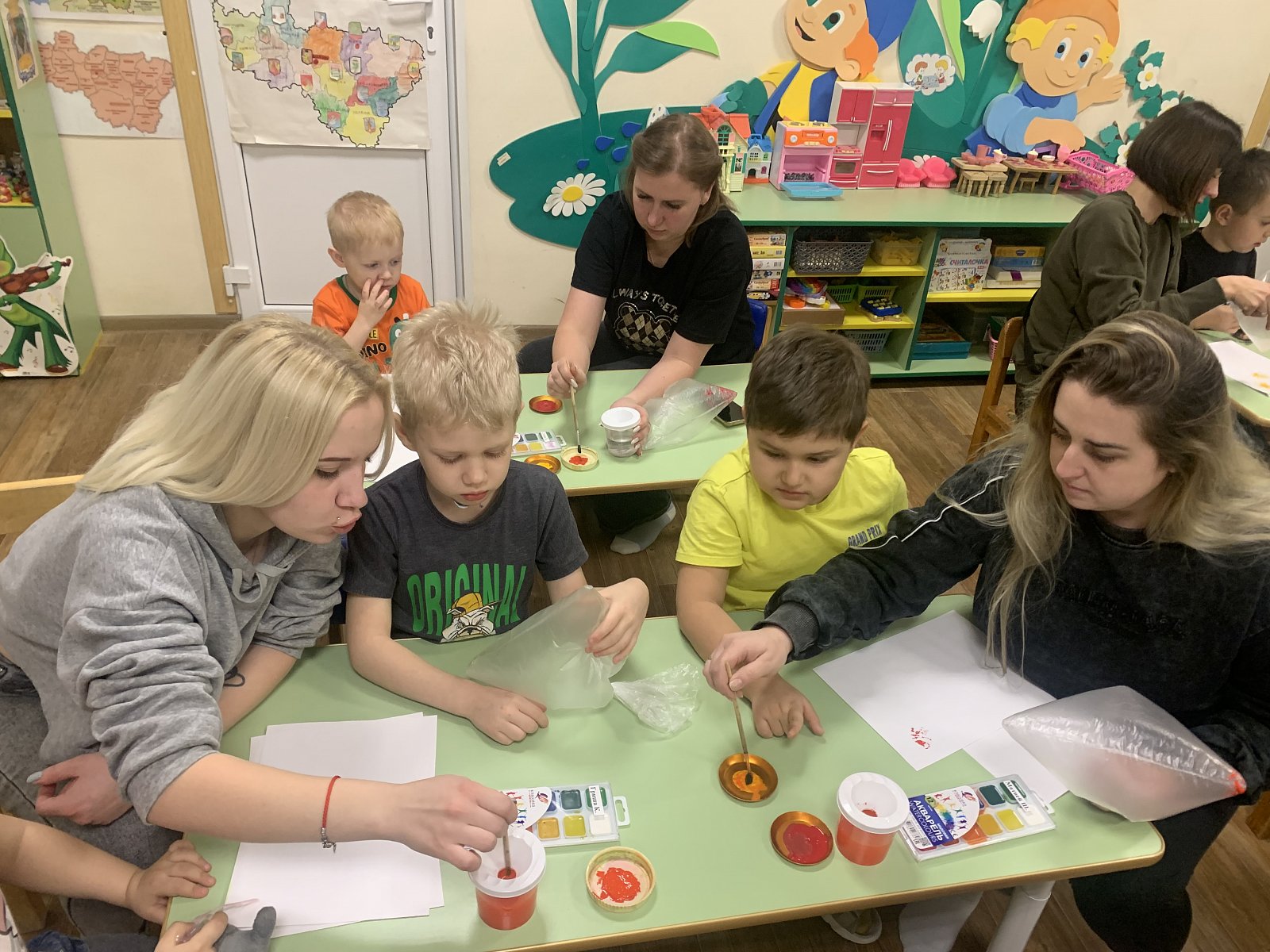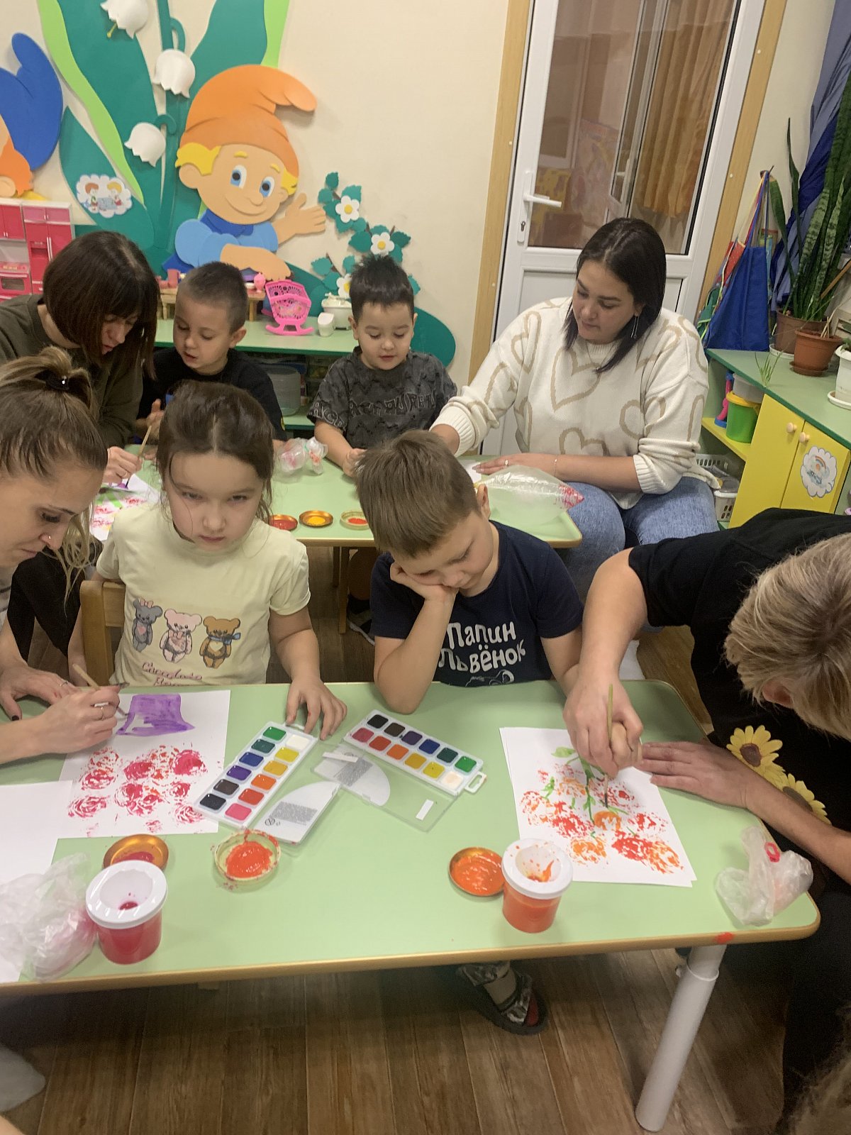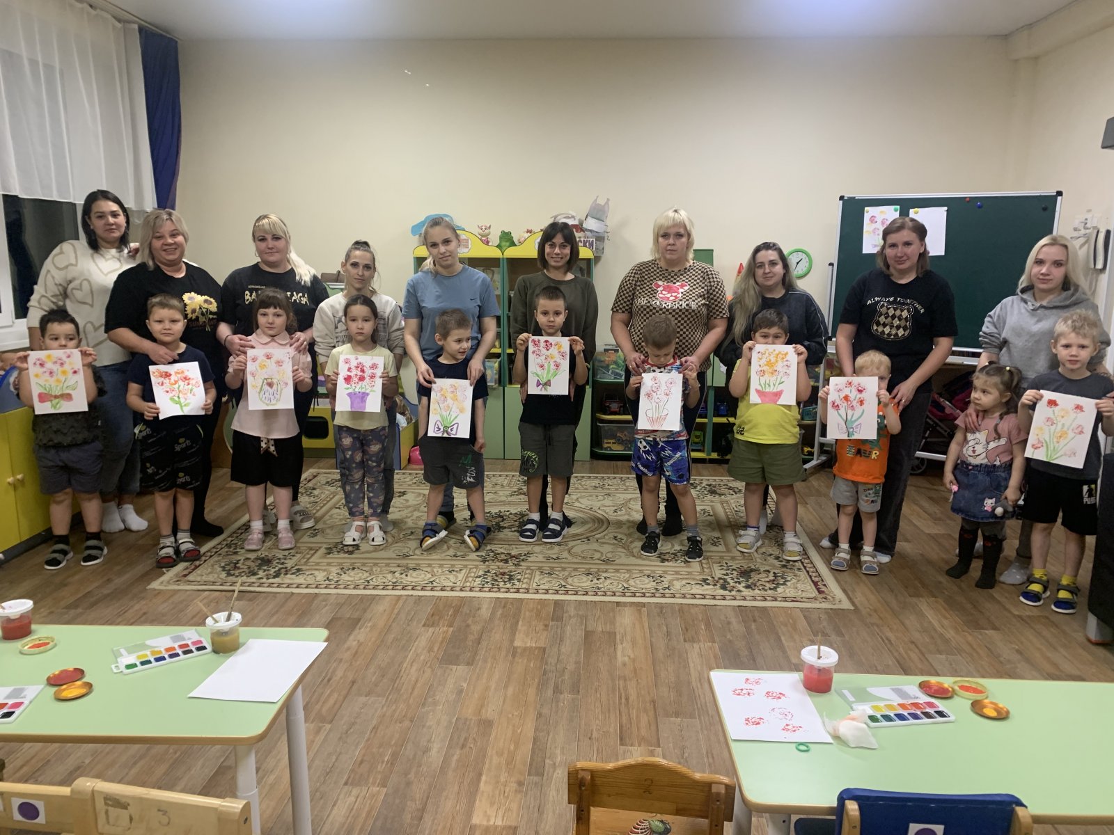28 ноября в группе «Колокольчик» поселок Новый прошло мероприятие «Рядом с мамой». Дети станцевали танец «Разноцветная игра» и поздравили с наступающим праздником. Затем воспитатели предложили мастер-класс рисования цветов с помощью пакета. Ребята, вместе с мамами, увлеченно работали и получились отличные букеты.