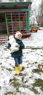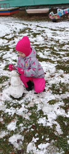 26 ноября у детей старше-подготовительной группы «Ручеек» не было предела радости. Поэтому ребята с нетерпением ждали прогулку. На улице дети с восторгом любовались заснеженной природой, рассматривали причудливые снежинки. Несмотря на то, что снега было не так уж много, и мальчишки, и девчонки катали комочки, и даже сумели слепить чудных снеговиков. От этой прогулки ребята получили море ярких эмоций и огромное удовольствие. Блестящие глаза, румяные щечки и отличное настроение - результат игры с первым снегом. Ведь первый снег всегда самый лучший, чудесный, долгожданный и незабываемый.
