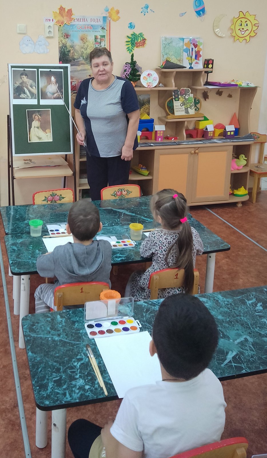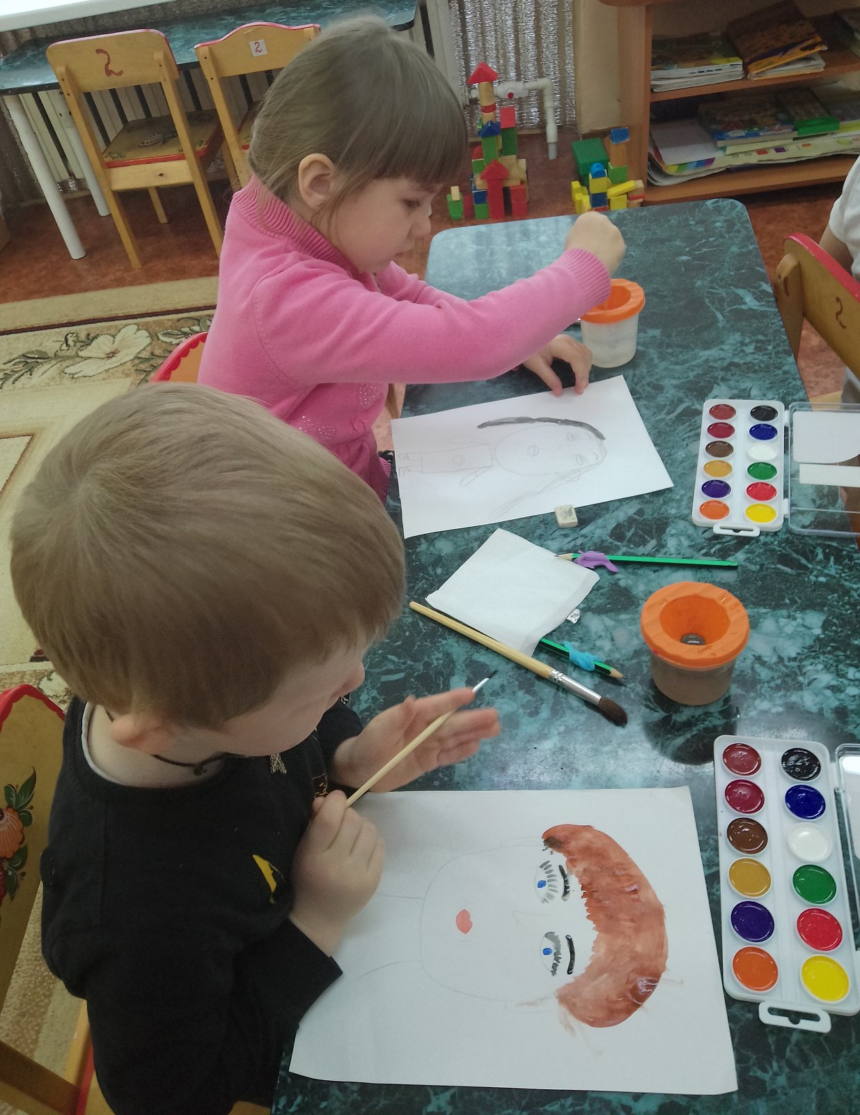 Перед занятием была проделана предварительная работа: воспитатель Сорокина С.С. познакомила ребят с понятием "портрет" и как художники создавали портреты.