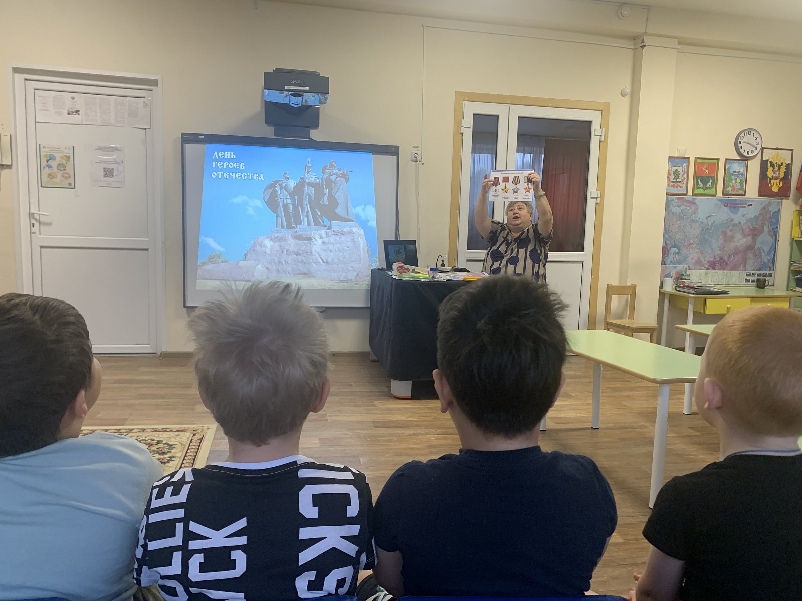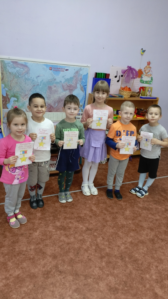 В доступной форме для дошкольников была представлена презентация «День Героев Отечества». Ребята познакомились с историей возникновения праздника, сделали вывод о том, кого мы можем назвать героем, определили качества характера героя Отечества: смелость, честь, милосердие, решительность, отвага, храбрость, находчивость, сила и выносливость. Героями не рождаются, ими становятся, а значит, у каждого есть возможность в будущем стать Героем нашей страны.