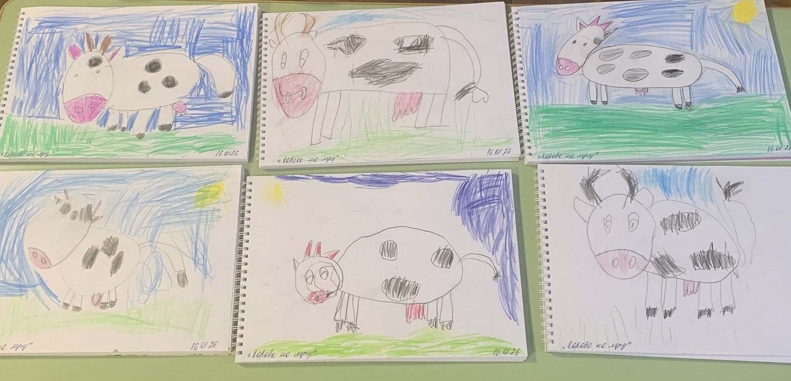 С 12 по 16 января на группе «Колокольчик» прошла тематическая неделя «Домашние животные». В течение недели ребята знакомились с домашними животными и их детёнышами, рассматривали иллюстрации, рисовали «Корову», лепили «собаку» и делали аппликацию «Коней».