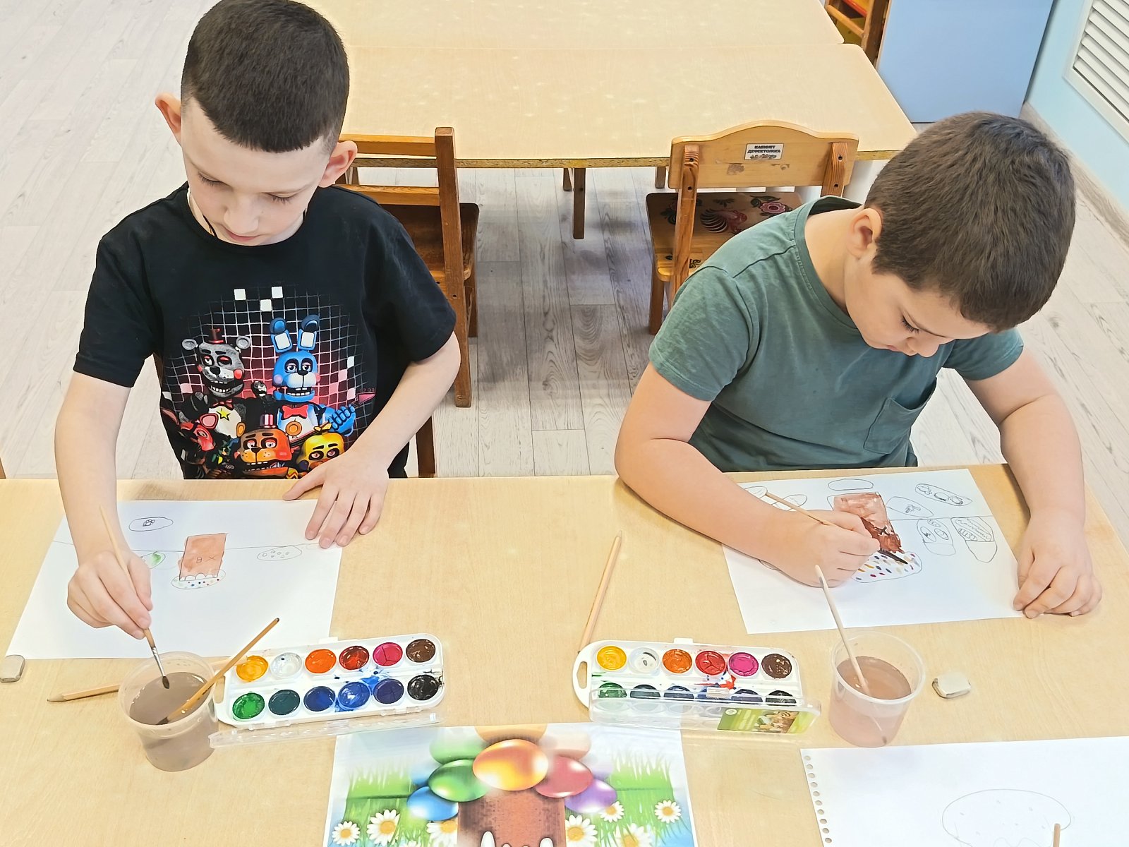 Не менее увлекательной частью недели стала подготовка к Пасхе: воспитанники рисовали пасхальные куличи и яйца.