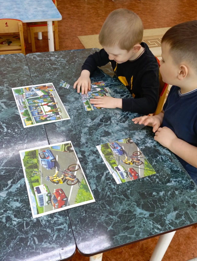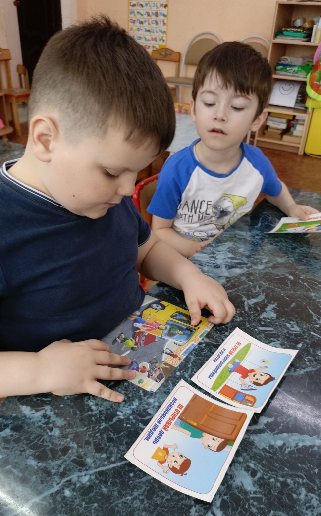 В рамках игры "Кому дать эту картинку" дети учились правильно вести себя в различных ситуациях: во время прогулок, когда остаются одни дома, и, конечно же, вблизи проезжей части. Старшие ребята продемонстрировали отличное понимание правил безопасности: они знают, что нельзя играть на стройке, разговаривать с незнакомцами на улице и находиться рядом с дорогой. Дома же им напомнили о недопустимости игр со спичками, ножами и использования электроприборов.