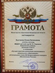 Заведующий О.В. Сергиевская награждена Почётной грамотой Министерства образования и молодёжной политики Владимирской области