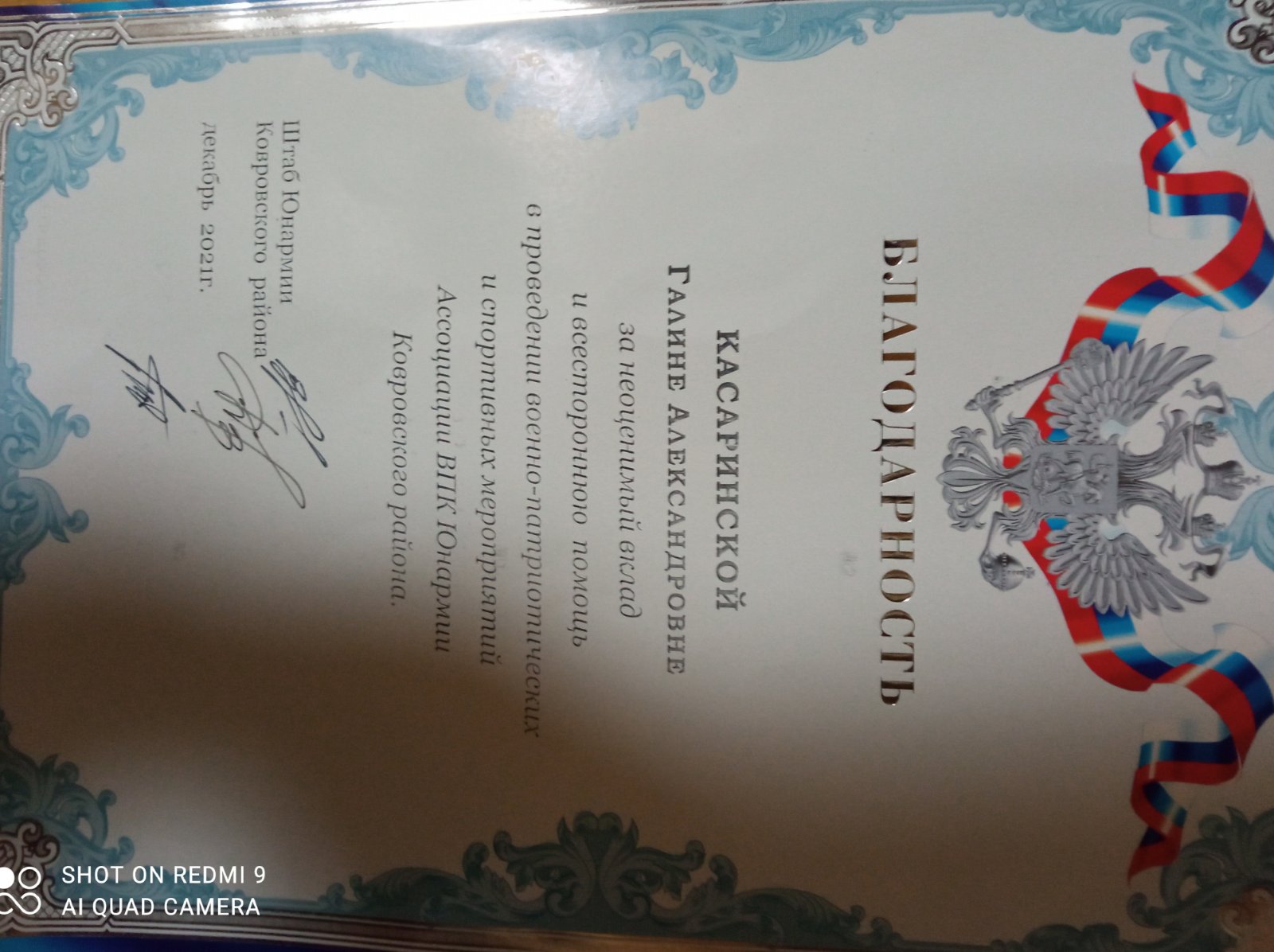 Награждение воспитателя Касаринской Г.А.